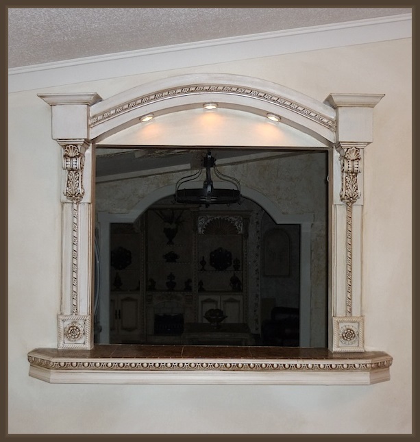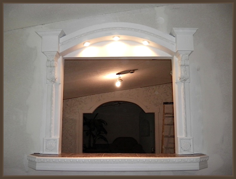| Most material I used into building this bar were leftover pieces, except for the light fixtures, corbels & rosettes. It looks good in white but I'm leaning towards a mixture of styles; traditional, old world and tuscany. |